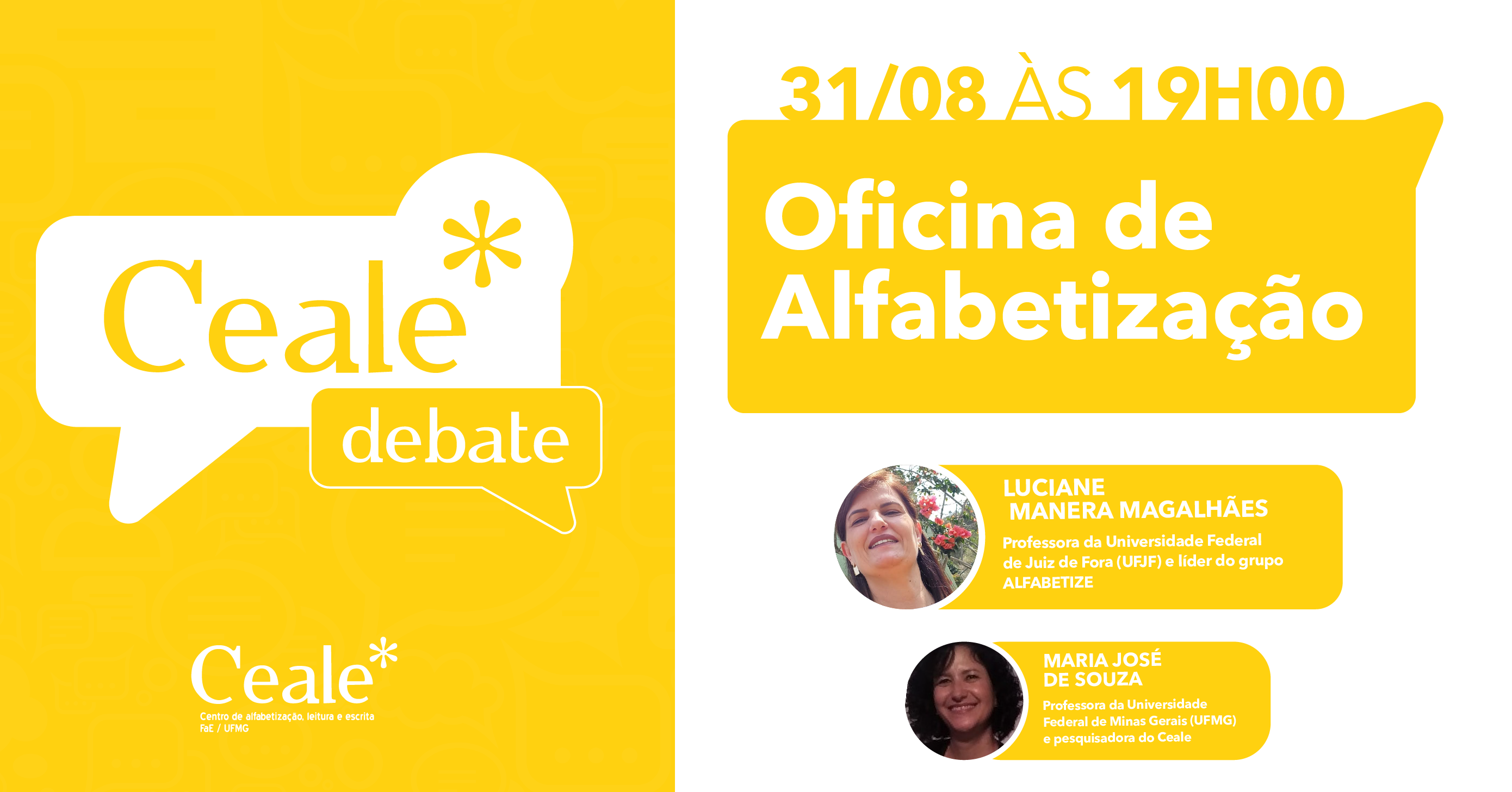 No próximo dia 31 de agosto, quarta-feira, às 19h, o Ceale Debate recebe a professora da Universidade Federal de Juiz de Fora, Luciane Manera, para conversarmos sobre as recentes contribuições da professora nos estudos do campo da alfabetização.