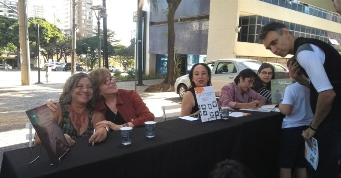 As pesquisadoras do Ceale Isabel Frade e Zélia Versiani (esquerda) no lançamento dos livros Quem inventou o lápis?, Pra que serve a Arte? e O que é um livro?, da Editora UFMG.