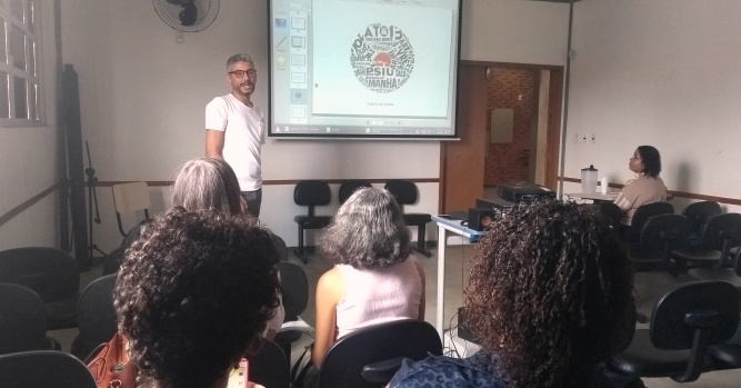 Roberto começou a aula resgatando o que foi discutido em setembro. “Chegamos à conclusão de que ensinar literatura é ensinar a leitura literária, e não apenas a ler o livro”, lembrou. O professor chamou atenção para como os alunos hoje têm uma mente mais “difusa”, “multifacetada”, e que as gerações passadas têm uma mente mais “esquematizada numa linearidade”.