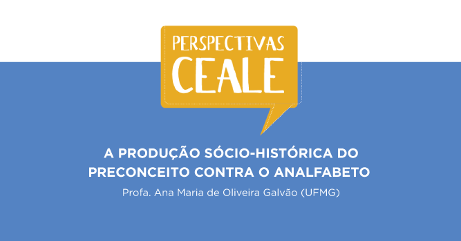 Na próxima sexta, será realizada nova edição do Perspectivas Ceale, com apresentação da professora e pesquisadora Ana Maria de Oliveira Galvão, da Faculdade de Educação da UFMG. Com o tema "A produção sócio-histórica do preconceito contra o analfabeto", o evento vai discurtir os sentidos atribuídos ao termo analfabeto, em suas primeiras ocorrências, em periódicos publicados entre 1808 e 1849 em diferentes províncias brasileiras, com Rio de Janeiro, Pará e Minas Gerais. Confira abaixo o resumo completo.