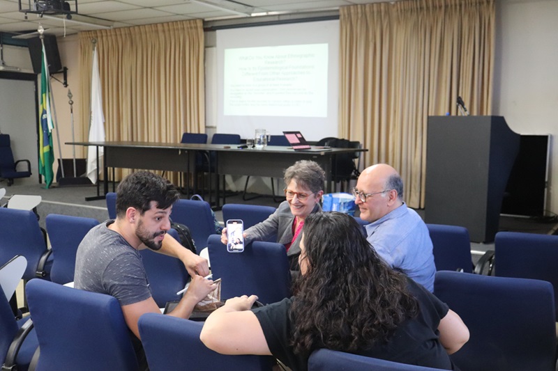 O seminário contou com exposições teóricas e atividades práticas, em que Bloome revisitou conceitos-chave da pesquisa etnográfica e suas aplicações no estudo da cultura em sala de aula. O professor também compartilhou questões sobre as áreas que estão sendo amplamente discutidas no cenário acadêmico americano, e como elas são relevantes para o trabalho etnográfico, que requer que o pesquisador entre em contato com culturas diferentes da dele. “Acima de tudo, ao realizar uma pesquisa etnográfica, é importante manter uma ‘mente aberta’, mas nunca uma ‘mente vazia’” (tradução nossa) afirmou.