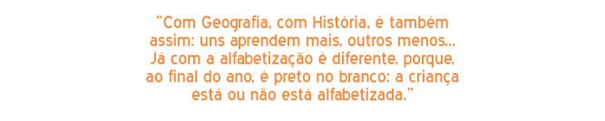 É verdade que, em geral, as professoras evitam as turmas de alfabetização. Muitas vezes, são as "novatinhas", como elas são chamadas nas escolas, que vão para as turmas iniciais, porque as mais antigas têm o direito de escolher primeiro, e quase sempre fogem das turmas de alfabetização. A novata vai para a alfabetização, mas não fica lá muito tempo, sai assim que chega outra "novatinha"... É pena, porque a experiência é um fator importante na constituição de uma alfabetizadora competente. Mas é compreensível que as professoras evitem essas turmas: a alfabetização põe uma grande responsabilidade sobre a professora, é a etapa em que os resultados do trabalho são mais evidentes, como já disse antes.
