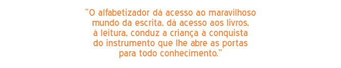 O fundamental é mesmo gostar de alfabetizar e assumir a alfabetização como uma opção pessoal. Nas turmas de alfabetização, deveriam ficar somente professoras que gostam de alfabetizar. Embora alfabetizar tenha essa característica um pouco ameaçadora de que a professora é avaliada de forma objetiva, é também muito gratificante ter um resultado tão visível do trabalho desenvolvido. A professora recebe uma criança que olha para um livro e só vê risquinhos indecifráveis nas páginas, desenvolve o processo de alfabetização e, no fim do ano, vê a criança decodificando e compreendendo aquilo que eram risquinhos. O alfabetizador dá acesso ao maravilhoso mundo da escrita, dá acesso aos livros, à leitura, conduz a criança à conquista do instrumento que lhe abre as portas para todo o conhecimento, toda a cultura que vem sendo preservada pela escrita, ao longo de séculos. Eu não teria dúvida em afirmar que isso é muito mais gratificante do que levar um orientando a produzir uma tese de doutorado... Nada é mais gratificante, na educação, que alfabetizar uma criança.